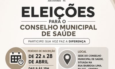 25 de abril de 2026O Conselho Municipal de Saúde de Arcoverde informa à população e à imprensa a realização do...