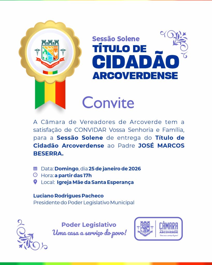 O Título de Cidadão Arcoverdense é uma das mais importantes honrarias concedidas pelo Poder Legislativo municipal e representa o reconhecimento oficial da cidade àqueles que contribuem de forma significativa para o seu desenvolvimento humano e social. A homenagem ao Padre José Marcos reforça sua forte ligação com Arcoverde e o carinho da população pelo seu trabalho.