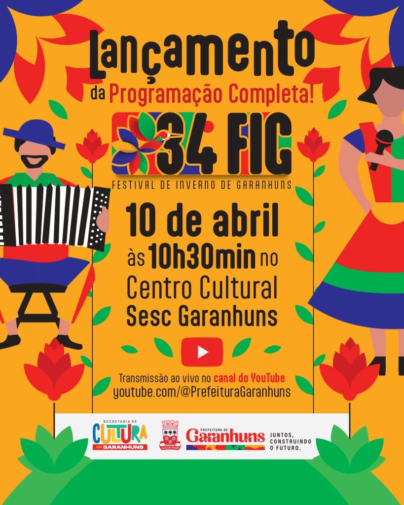 Serviço – Lançamento Oficial da Programação Geral do 34º Festival de Inverno de Garanhuns