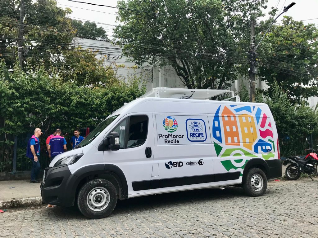 Veículos adaptados funcionam como escritórios itinerantes e servem como ponto de escuta social para moradores de comunidades do Recife