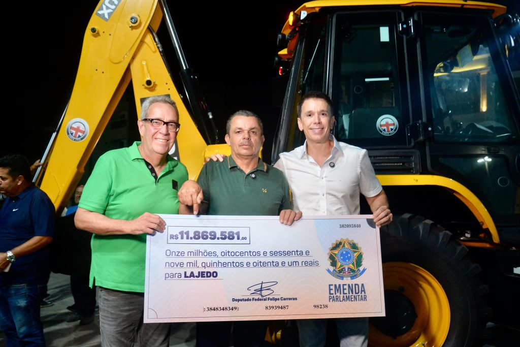 Felipe Carreras entrega retroescavadeira e anuncia R$ 11,8 milhões para Lajedo