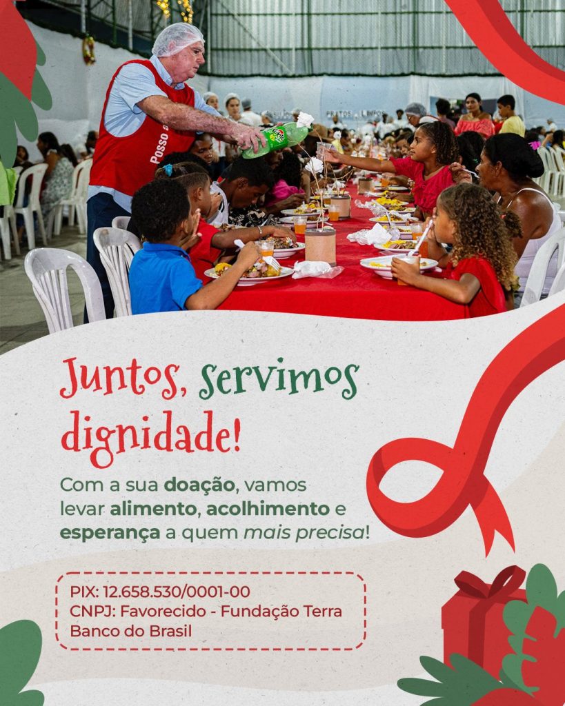 Com o lema “Juntos, servimos dignidade!”, a Fundação Terra deu início à sua tradicional Campanha de Natal Solidário, que tem como objetivo arrecadar doações para promover uma ceia natalina destinada a 2 mil pessoas em situação de vulnerabilidade social. O evento será realizado no dia 20 de dezembro, na quadra da Instituição, em Arcoverde, Pernambuco.