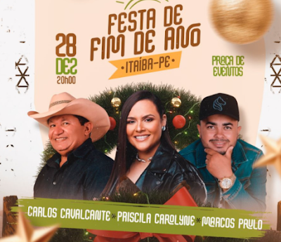 Entre os destaques da programação está a cantora Priscila Carolyne, considerada uma das grandes revelações do momento. Com voz marcante, presença de palco e talento reconhecido pelo público, a artista promete animar a praça e conduzir uma noite especial para os itaibenses. Também sobem ao palco Carlos Cavalcante e Marcos Paulo, completando o time de atrações que promete fechar o ano com chave de ouro.