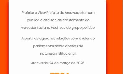 24 de março de 2026A Prefeitura de Arcoverde comunicou, nesta terça-feira (24), o afastamento político do vereador Luciano Pacheco, atual...
