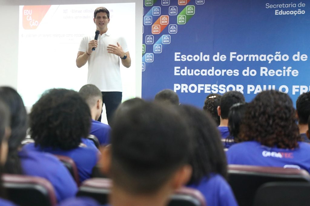A Prefeitura do Recife, por meio da Secretaria de Educação, segue investindo na formação dos estudantes da Rede Municipal com o Ondatec, programa de preparação para processos seletivos em instituições técnicas e profissionalizantes. Ao longo do ano, cerca de 1.800 alunos participam de aulões quinzenais de Língua Portuguesa e Matemática, realizados em dez polos distribuídos pela cidade. O prefeito João Campos acompanhou os aulões da manhã deste sábado (27).