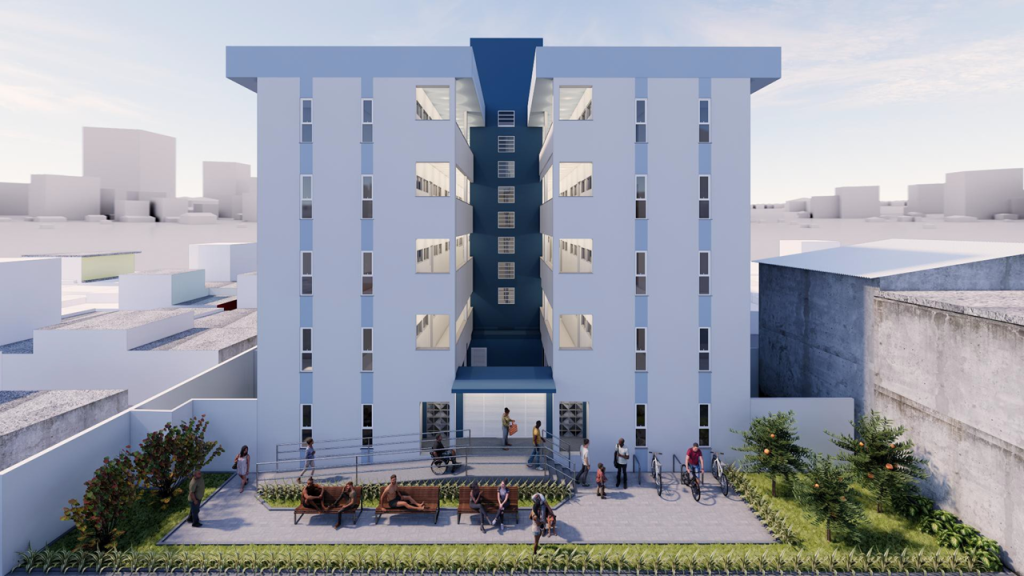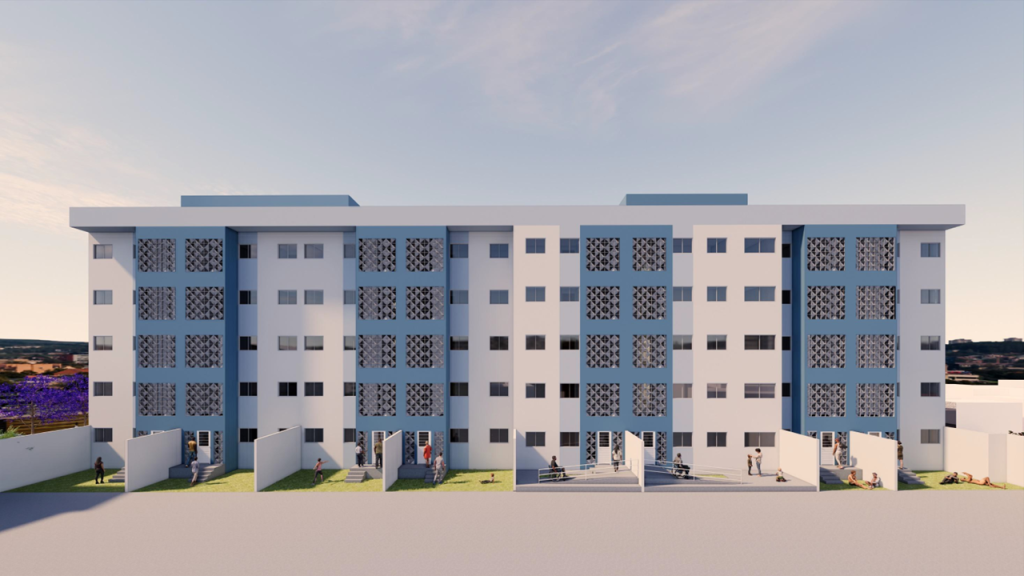 O habitacional ficará na rua Paris, próximo à comunidade de Dancing Days, e será formado por um bloco com 5 pavimentos (térreo + 4 andares). Os apartamentos terão tipologias diversas, chegando a 58 m² de área. O terreno possui área total de 2,1 mil m² e a edificação contará com uma área construída de 5,4 mil m². “A infraestrutura inclui sistema de saneamento de água e esgoto, coleta seletiva de resíduos e acessibilidade, contemplando as áreas comuns e os apartamentos acessíveis”, detalha o chefe do Gabinete do ProMorar, João Charamba.
